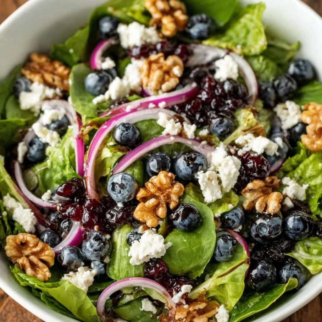 I learned this Blueberry Goat Cheese Salad on a slow, sunlit Saturday when I wanted something bright, fast, and a little fancy without much fuss. It’s a simple tossed salad of mixed greens, juicy blueberries, crumbled goat cheese, thin red onion, and toasted walnuts, all dressed with a quick olive oil–balsamic vinaigrette. It’s the kind of dish that works as a light lunch, a brunch centerpiece, or an elegant starter for dinner. If you like contrasts—sweet fruit, tangy cheese, crunchy nuts—this salad delivers in every bite. For a different small-plate twist, I often pair it with easy appetizers like caramelized onion and goat cheese tarts.