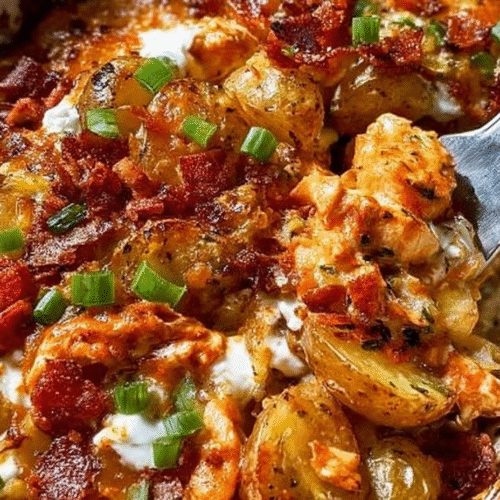 Buffalo Chicken Roasted Potato Bake