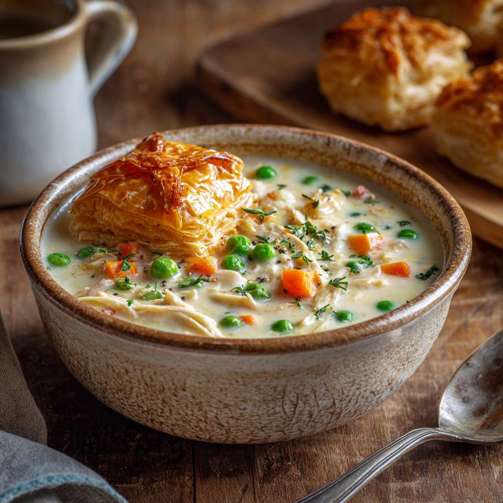 - 🥧 Creamy Chicken Pot Pie Soup with Crust Toppers – bake puff pastry squares and serve on top.