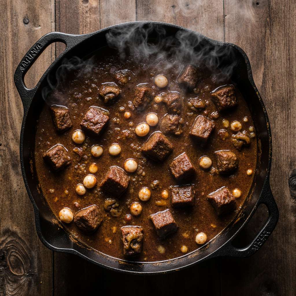 - Braise: Return beef (and accumulated juices) to the pot. Bring to a gentle simmer, cover, and transfer to the oven for 2–2½ hours, stirring once, until beef is fork-tender.