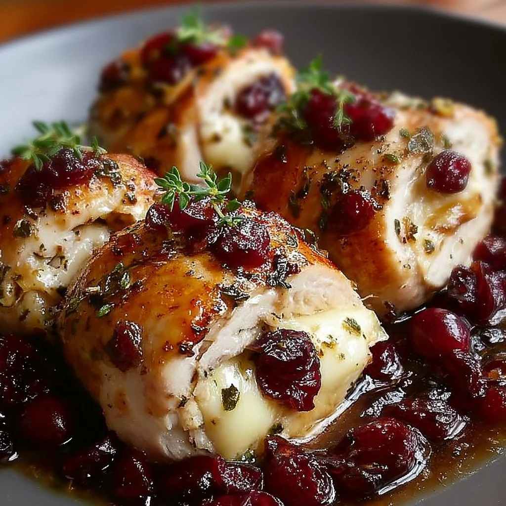 The texture is a contrast: the chicken stays juicy and firm, the seared exterior adds a thin savory crust, and the interior fills with molten, tangy-sweet pockets of flavor. The brie melts into ribbons that balance the tart cranberry sauce, so every bite is creamy, slightly fruity, and satisfying without being heavy.