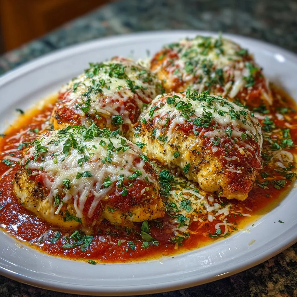 The finished dish balances tangy tomato, creamy melted mozzarella, and the nutty sharpness of parmesan, while slow cooking turns chicken breasts tender without drying them out. Texturally, the cheese forms a gooey top while the meat below stays succulent, making every forkful comforting and satisfying.