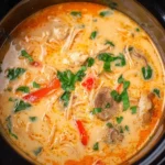 This soup marries speed with depth: the crockpot gives time for flavors to meld without constant watching. The coconut milk brings richness while red curry paste provides bright, aromatic heat. Fish sauce and a touch of sugar add umami and balance. It’s low-effort but feels elevated — perfect for feeding a family or meal-prepping for the week.