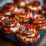 I still remember turning a can of pizza dough into little floral surprises for a Valentine’s potluck — warm, cheesy spirals that look fancy but take almost no time. These pizza roses are playful, kid-approved, and perfect when you want something cute without fuss. They’re basically pizza in muffin form: dough, a smear of marinara, a strip of mozzarella, and pepperoni curled into a rose. Ready in about 20 minutes from start to finish, they’re ideal for date night, a themed brunch, or a quick party appetizer.