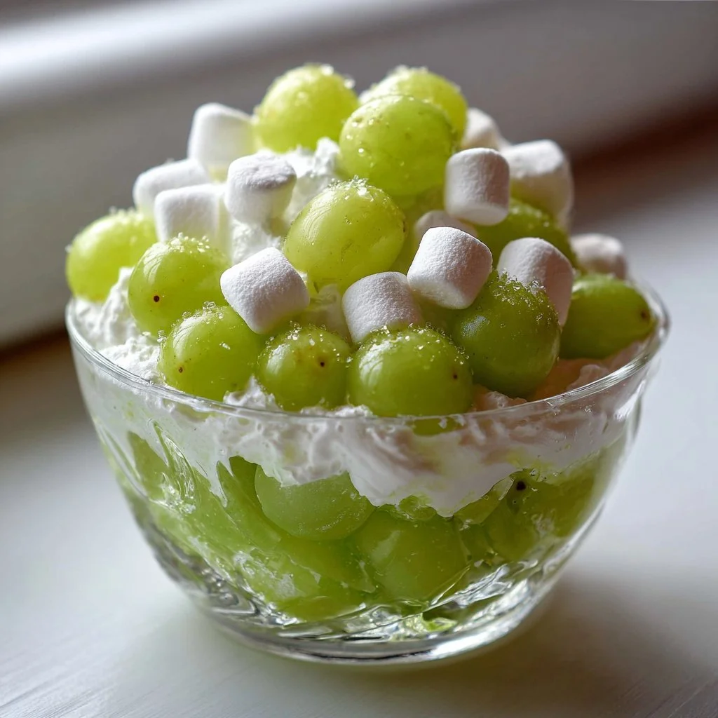 This dish is a simple, creamy fruit salad with a lush mouthfeel. The grapes give a juicy pop, marshmallows add soft chew, and whipped cream wraps everything in a smooth, airy coating. The lime juice cuts through the sweetness with a fresh, citrus lift so the result is bright rather than cloying.