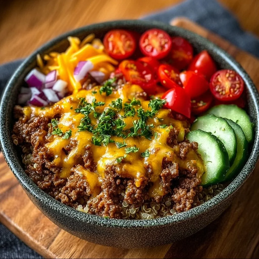 This high-protein cheeseburger bowl gives you the comfort of a burger with the balance of a bowl.