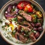 With its vibrant colors, robust flavors, and ease of preparation, this Mediterranean steak bowl is sure to become a favorite at your table. Whether for a casual dinner or a gathering with friends, it brings a delightful taste of the Mediterranean right to your home. Enjoy!