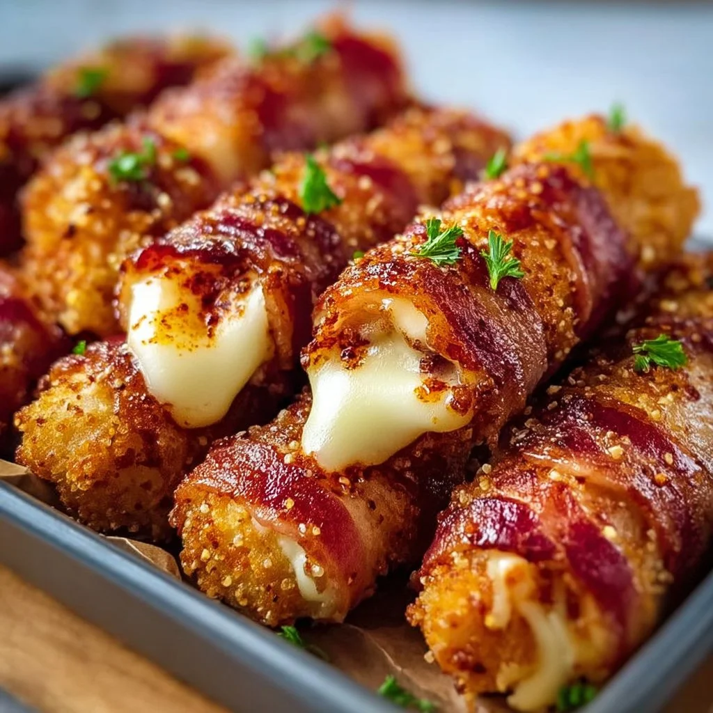 - Alternative cooking methods: for less oil, bake at 425°F (220°C) on a wire rack for about 12–15 minutes, turning once, until bacon is crisp and cheese molten. Results will be less deep-fried but still excellent.