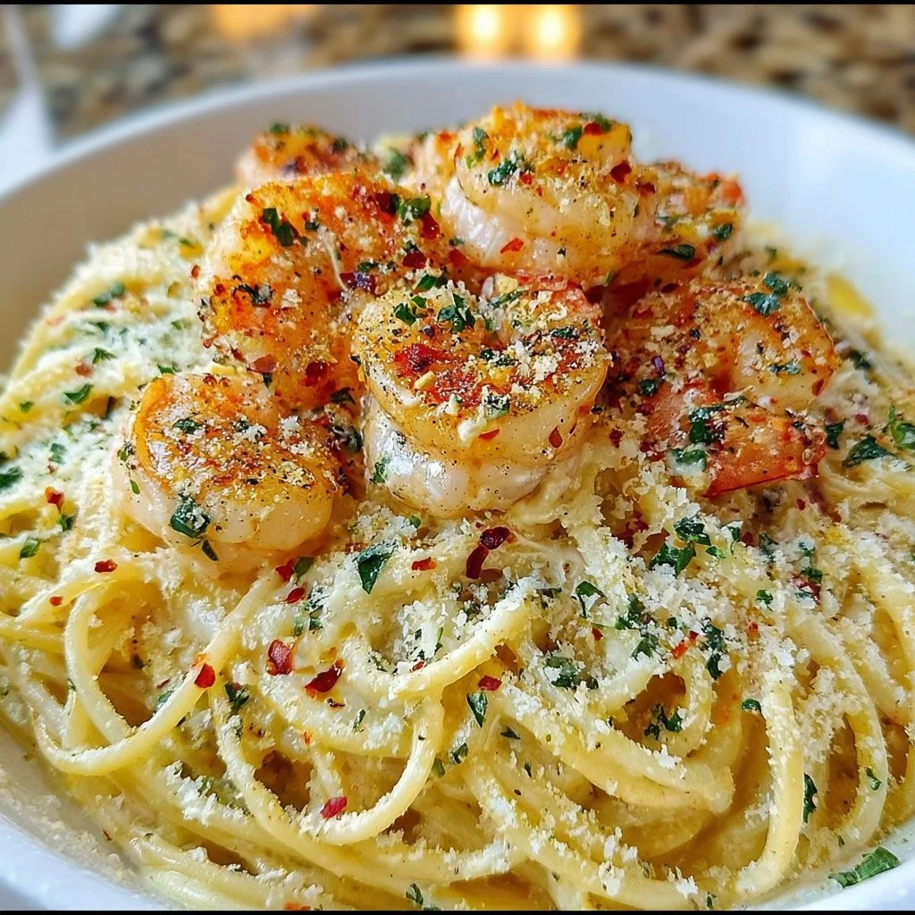 Shrimp Scampi Garlic Cream Pasta