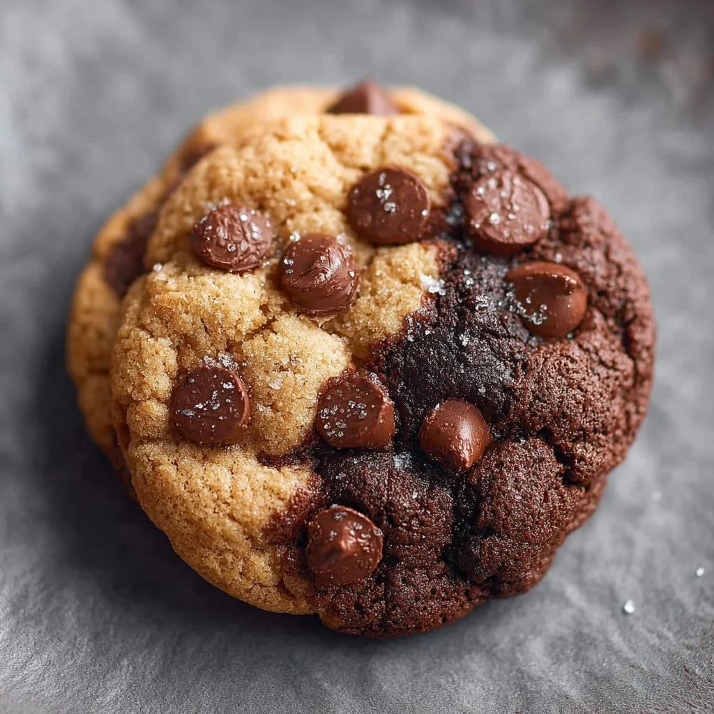 They bake together into one glorious, soft-and-chewy hybrid—crackled brownie side, tender chocolate-chip cookie side, and melty chips throughout.