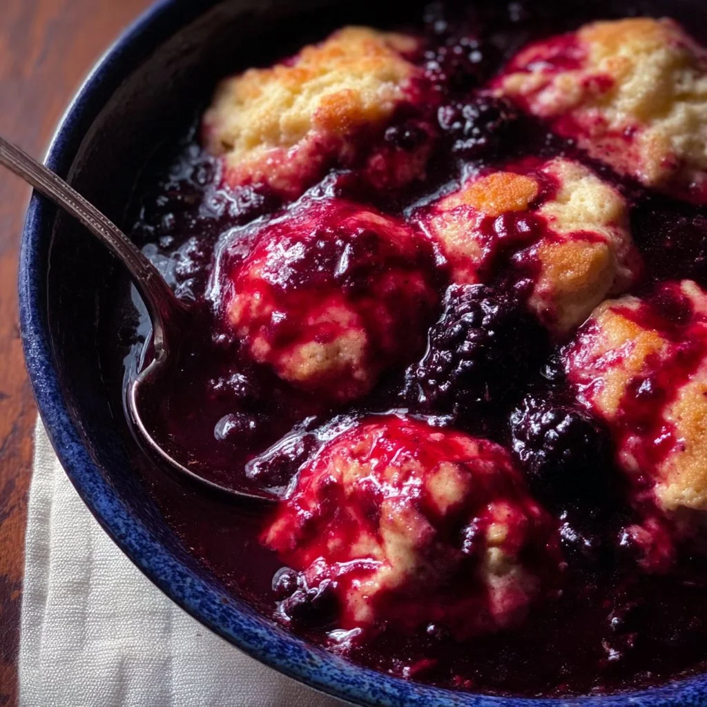 This recipe is uncomplicated, forgiving, and fast. You don’t need a rolling pin, pastry cutter, or hours of prep — just a pot for the sauce and a bowl for the batter. The blackberries make a bright, slightly tart sauce that balances the mildly sweet dumplings, so it doesn’t feel cloying. It’s budget-friendly (berries + pantry staples), kid-approved (the dumplings are fun to drop and eat), and adaptable to whatever fruit you have on hand.