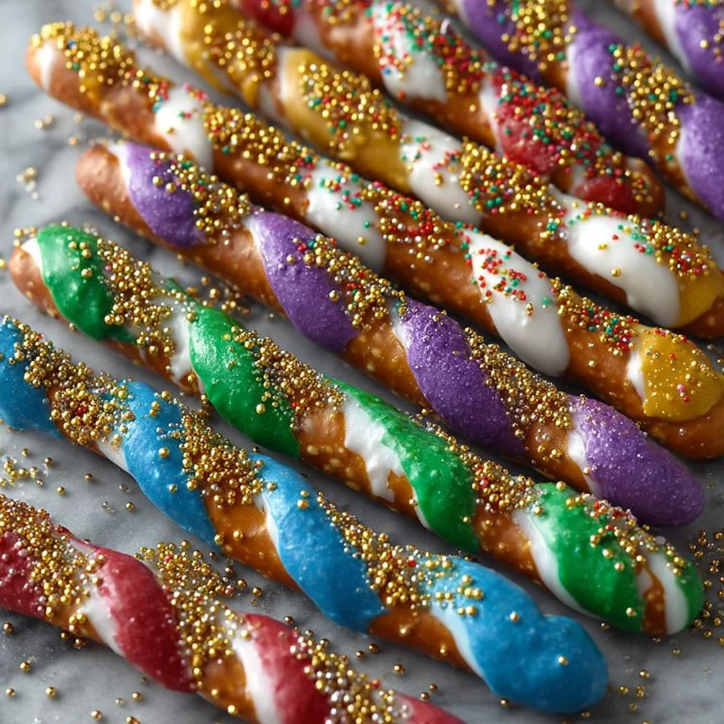 Mini pretzel bites: Use mini pretzel twists instead of rods, dip half in the white coating, sprinkle, and drizzle. These create bite-sized party snacks but require shorter setting time and careful handling.