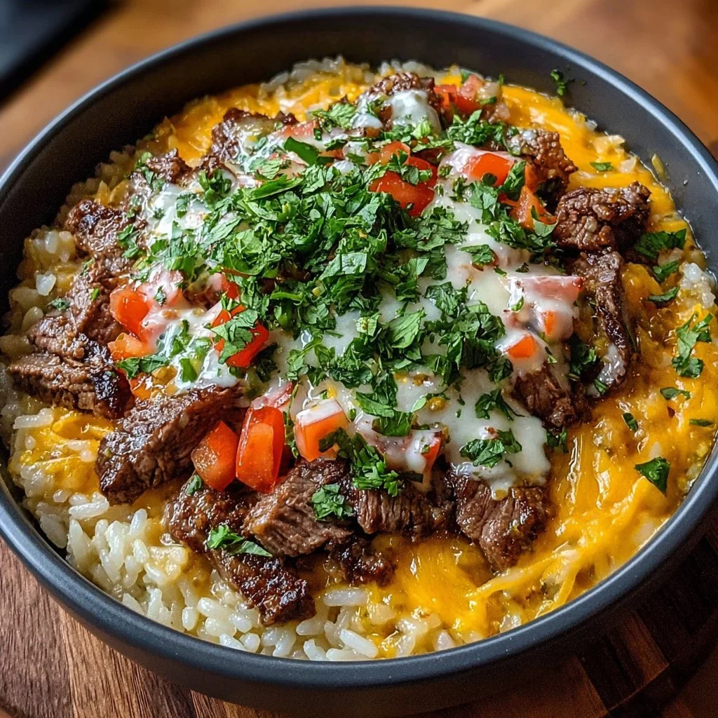 - Make it ahead for weeknight success: Cook the steak and rice separately and store them cooled in the fridge. Reheat gently in a skillet with a splash of broth and add queso at the end to preserve texture.