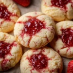 These strawberry cheesecake cookies are soft, slightly tangy little thumbprints filled with bright homemade jam. I first made them for a weekend brunch and they disappeared faster than I could brew a second pot of coffee. They combine cream cheese richness with a buttery cookie base and a jewel of jam on top — perfect for bake sales, afternoon tea, or a quick homemade gift.