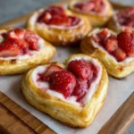 This recipe turns one sheet of store-bought puff pastry into adorable heart-shaped danishes with a creamy, slightly sweet filling and a fresh strawberry punch. It’s fast, uses minimal ingredients, and produces bakery-style results without any complicated laminating. Ideal when you want something impressive but low-effort.