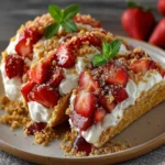 The texture is what hooks most people. The cookie-shell taco gives a sturdy, crisp edge that lets you bite through to a cloud-like cream cheese center. Folded whipped cream lightens the filling so it eats like a mousse, while the diced strawberries add bursts of freshness. A sprinkle of crushed graham and optional coconut adds the kind of crunch that keeps the bite interesting until the last crumb.
