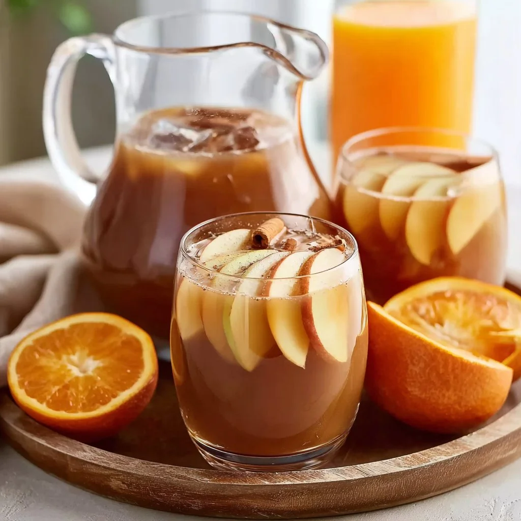 This punch tastes like a sunny orchard afternoon folded into a glass. The mouthfeel is smooth from the sweet tea with a bright citrus lift and rounded apple-cider body. The texture is light and drinkable, with fruit slices adding pleasant bites and visual interest.