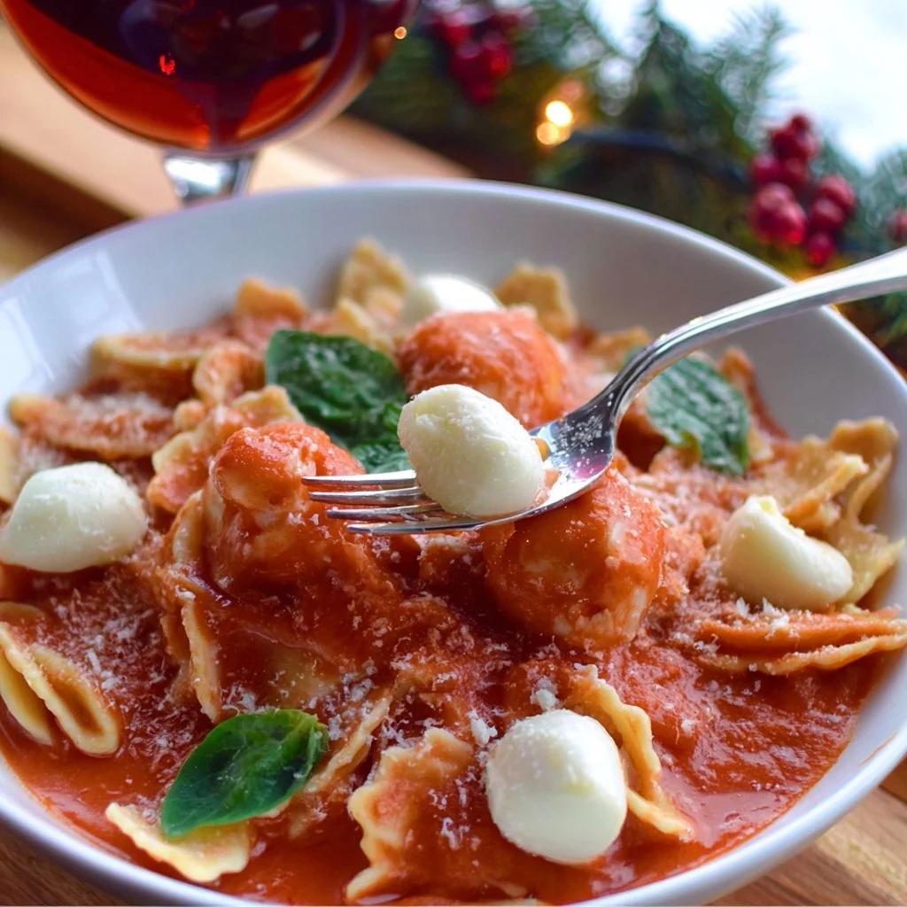- Plate the pasta in shallow bowls so the sauce spreads evenly. Nestle a few extra mini mozzarella balls on top for presentation.