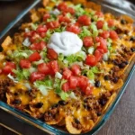 To reheat from frozen, thaw the beef mixture overnight in the fridge. Assemble with fresh chips and bake as directed. If you must freeze a fully assembled casserole, wrap tightly and bake from thawed only; frozen-assembled versions often get very soggy.