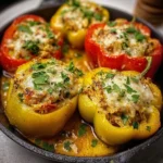 Add Toppings: Sprinkle the remaining shredded cheese on top of each stuffed pepper for that irresistible gooey finish.